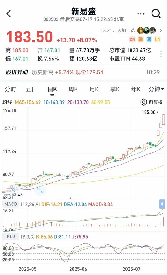 新易盛大涨8%,续创历史新高,最新市值1823亿元,胜宏科技大涨超9%,市值超1400亿元。